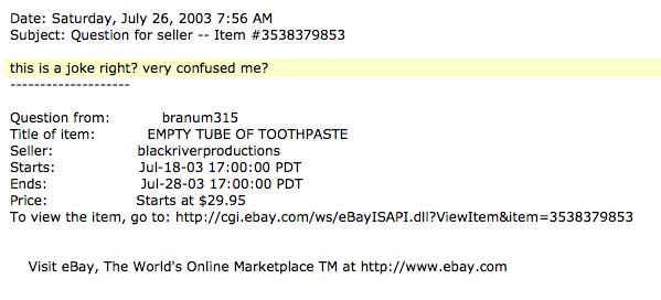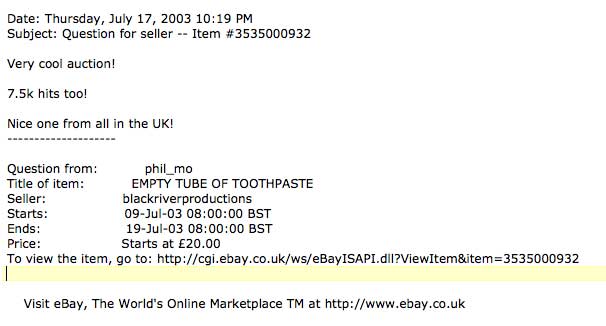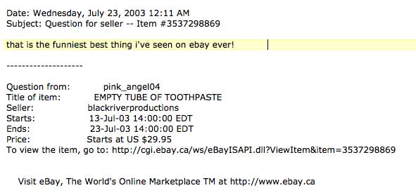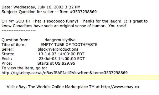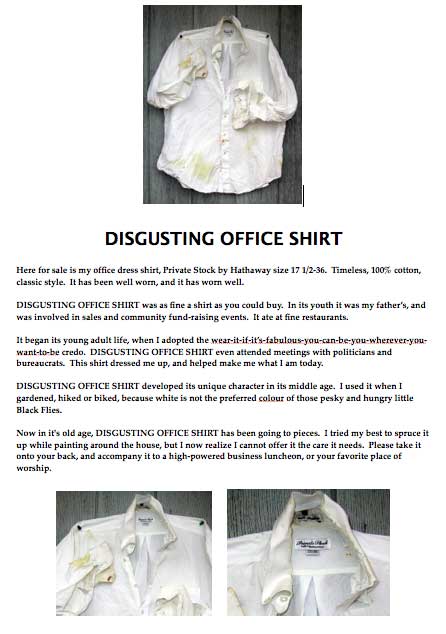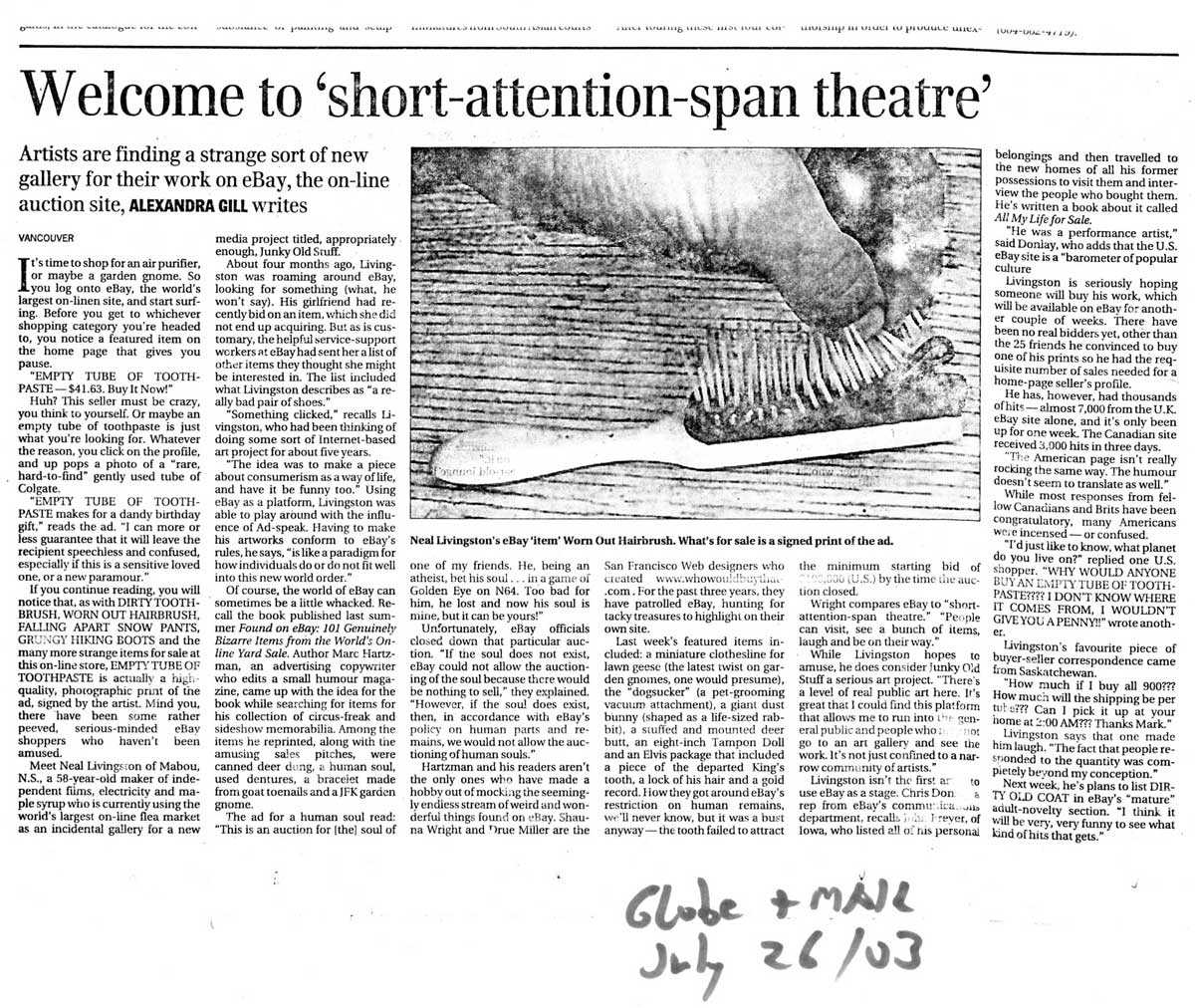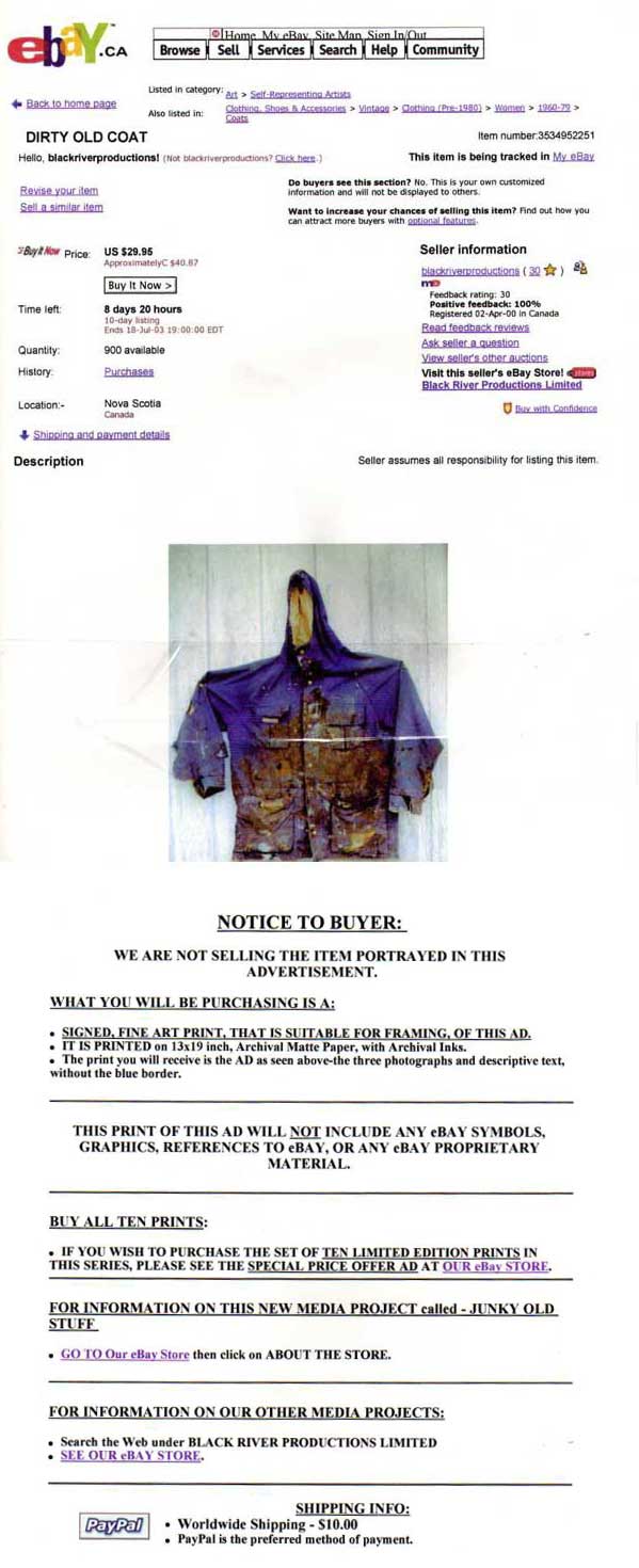 After The Globe and Mail article and somewhere beyond 30,000 hits in 10 days, the project came to eBay’s notice, and they disallowed the project – taking it off-line, as I was not selling the items in my Ads, only the Ads themselves !